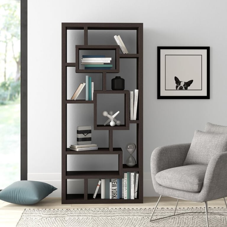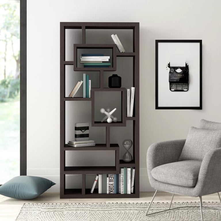 كلين مكتبة كتب بتصميم هندسي معاصر مصنوعة من الخشب الصلب تضفي خزانة الكتب المعاصرة هذه صورة ظلية مستطيلة مبسطة مع ظهر مفتوح.