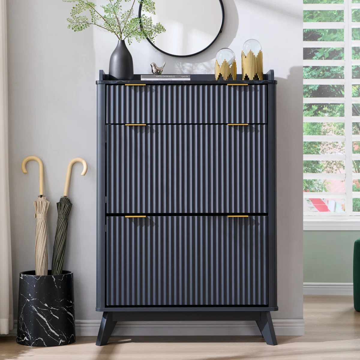 ليــڤون هي خزانة أحذية تجمع بين الفخامة العملية وتصميم الواجهات المموجة التي تمنحها حضورًا ديكوريًا مميزًا في أي مدخل. مصنوعة من الخشب الطبيعي المتين، بينما يأتي سطحها من بديل الرخام الفاخر ليضفي لمسة عصرية ويمنح مساحة عملية لعرض الديكورات أو وضع المتعلقات اليومية. تضم الخزانة ثلاث فتحات قلاب واسعة توفر عملية تنظيم سهلة ومرتّبة للأحذية، بالإضافة إلى درج علوي مثالي لحفظ الإكسسوارات.