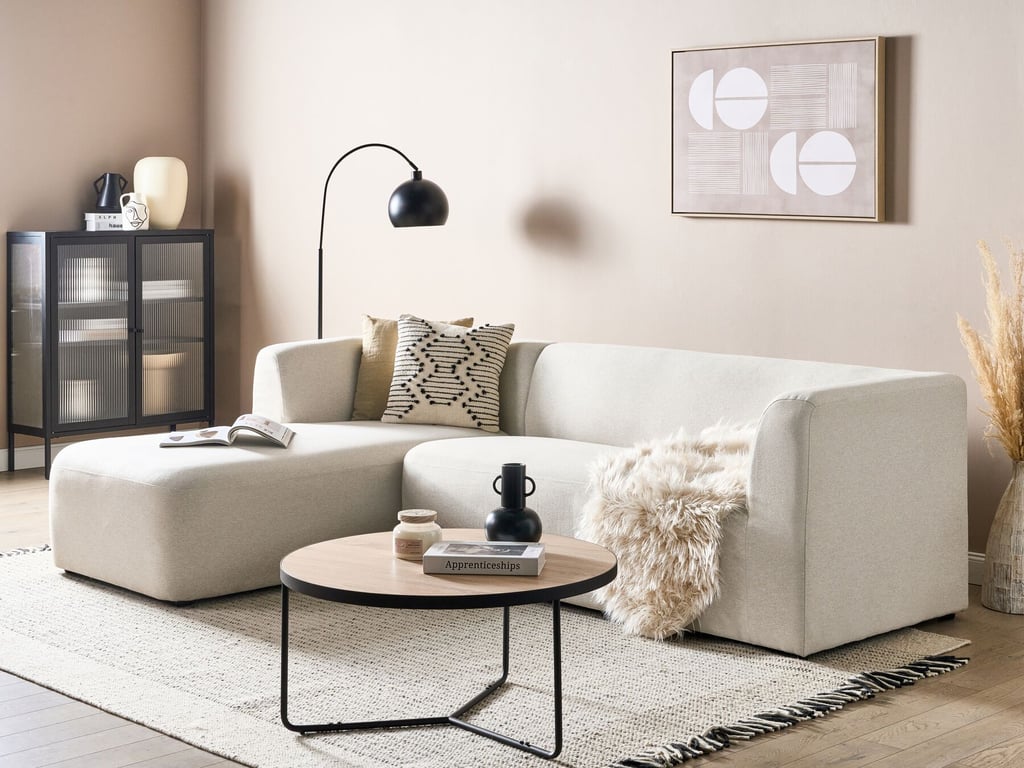 ماتلان – كنبة ركنية على شكل حرف الـ بقاعدة من الخشب الطبيعي