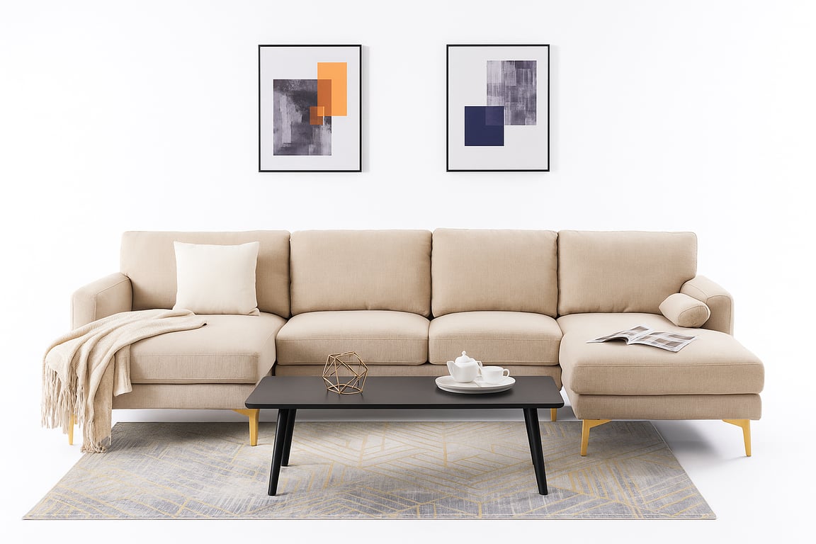 استمتع بالدفء والأناقة مع كنبة موكا الركنية، المصممة لراحة تدوم، ولمسة فاخرة من السحر الذهبي.