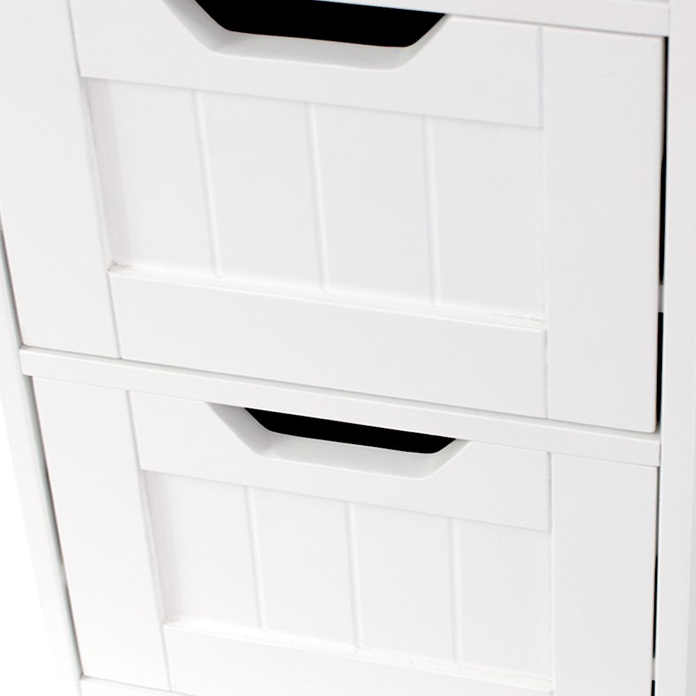 A slim, modern storage cabinet crafted from durable natural wood with a versatile white finish. Featuring 4 easy-to-open drawers, it offers practical storage for any room while maintaining a sleek, space-saving design.