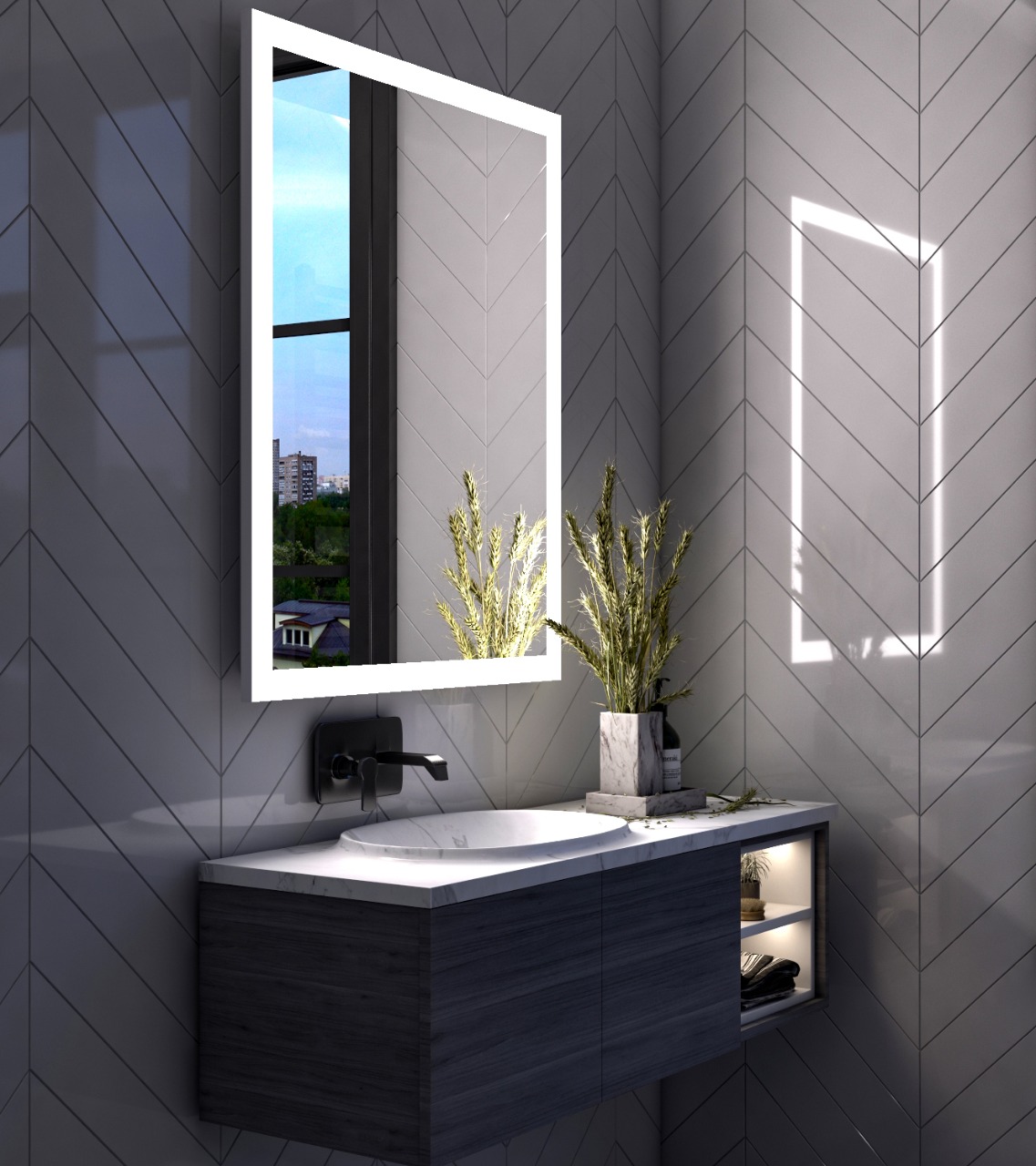 Dexy – LED Bathroom Mirror with Natural Wood Medicine Cabinet