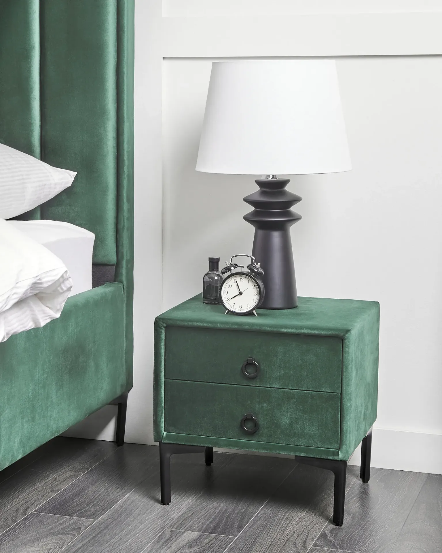 Aureva – Upholstered Bedside Table with 2 Drawers & Metal Legs