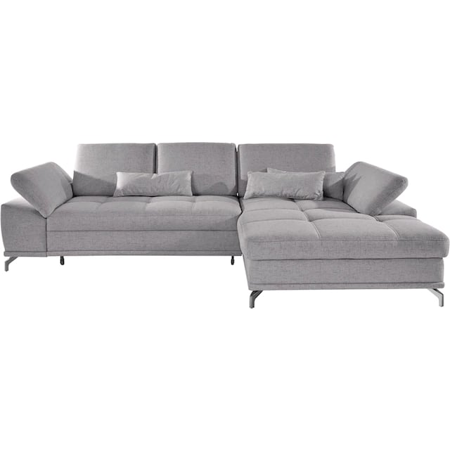 A sleek L-shaped sofa with dense sponge cushions, gray linen upholstery, and rust-proof stainless steel legs—designed for comfort, style, and durability.