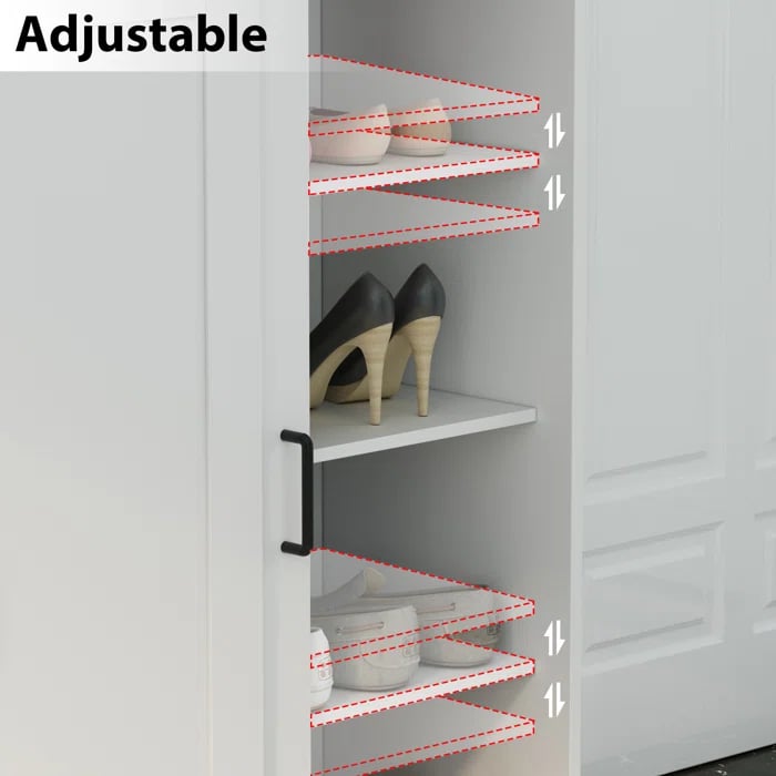 Looking for a way to keep your shoes organized and tidy? Our sliding door shoe storage cabinet with 4 adjustable shelves, in a stylish white design, is the perfect solution. it offers 4 shelves with a sliding door that saves space efficiently.