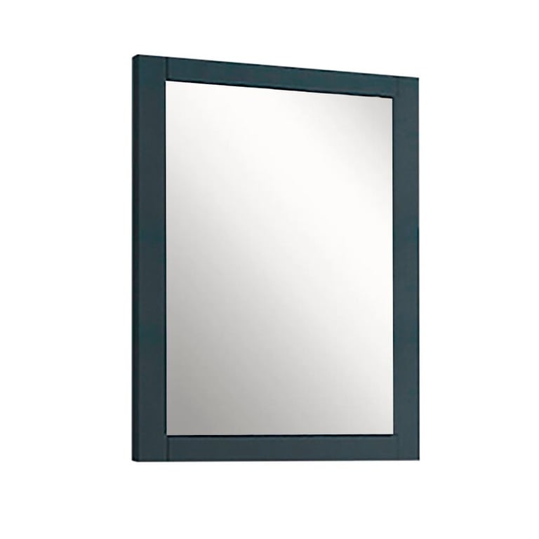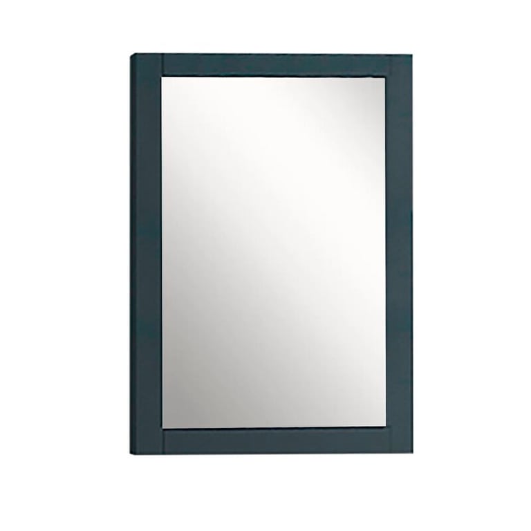 A sleek rectangular mirror with a blue natural wood frame, designed for elegance, durability, and moisture protection.
