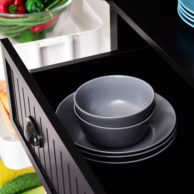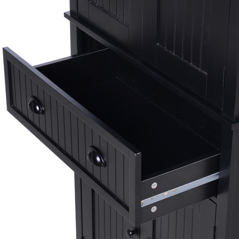 The Kity Kitchen Pantry Cabinet brings refined sophistication to modern kitchens. Its deep dark tone and clean-lined silhouette create a bold yet timeless statement. Made from high-quality natural wood, Kity features upper and lower cabinets with adjustable shelves and a smooth central drawer for utensils and essentials. Its vertical design maximizes space while maintaining an elegant minimal look. Whether used as a pantry, dish cabinet, or multipurpose storage, Kity combines utility with luxurious simplicity.