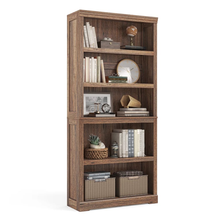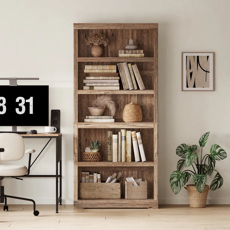 3. Five spacious open shelves for organizing décor and books.
