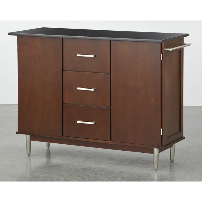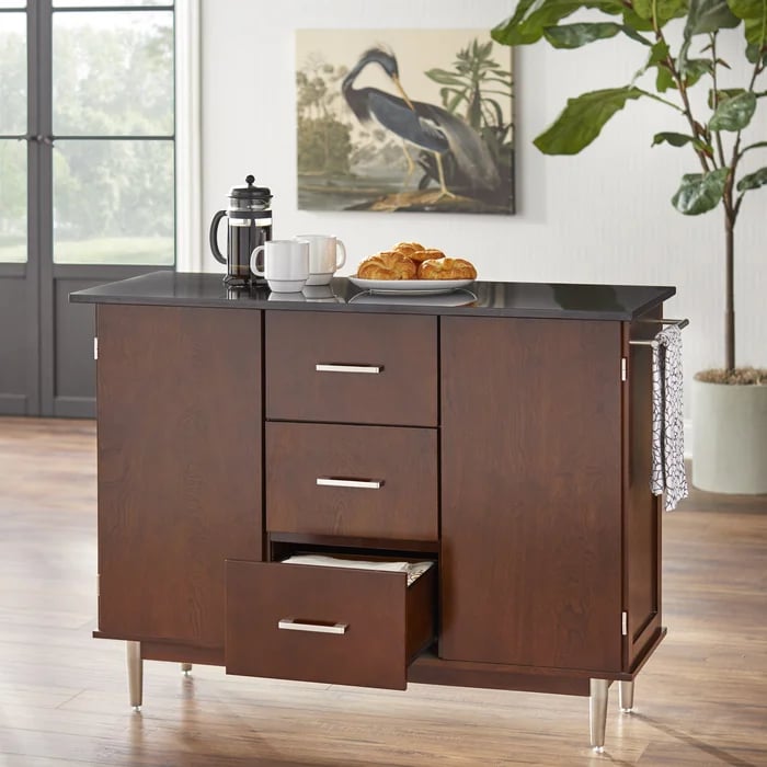 Try this contemporary Kitchen Island with Granite Top to add an elegant and functional touch to your kitchen decor. It includes three drawers and two cabinets. Its ganite top is wide enough to preparing food or seving.