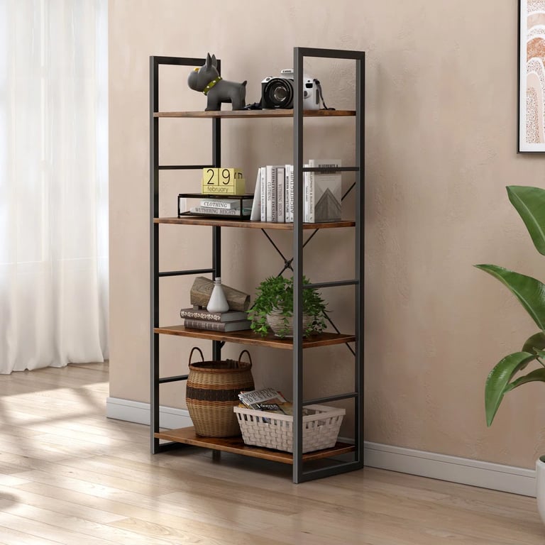 The Landrin Bookcase blends industrial charm with modern simplicity through its combination of natural wood shelves and durable metal structure. Designed with four spacious open tiers, it provides ample room to display books, décor, plants, or storage baskets. Its lightweight visual appearance makes it suitable for living rooms, bedrooms, offices, or compact spaces, delivering both functionality and a warm decorative touch.