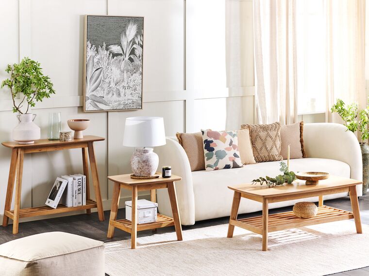 It blends modern simplicity with everyday function. Crafted from natural wood, it features a clean surface for décor and an open shelf for your books, glasses, or essentials. Its timeless design fits effortlessly into any living room, adding warmth and practicality in one elegant piece.