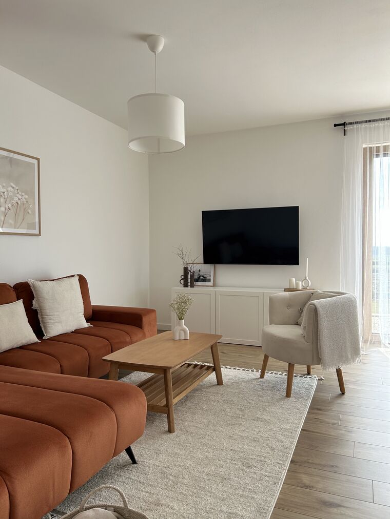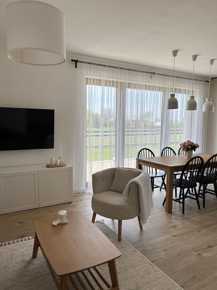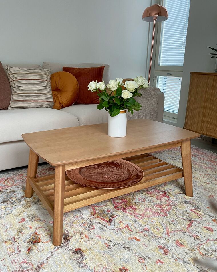 A coffee table with a modern and simple design. Made of natural wood, ensuring that it will stay with you for many years. It is characterized by simplicity of design and practical use.
