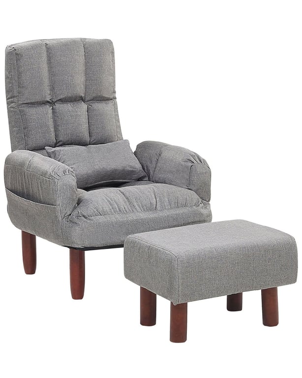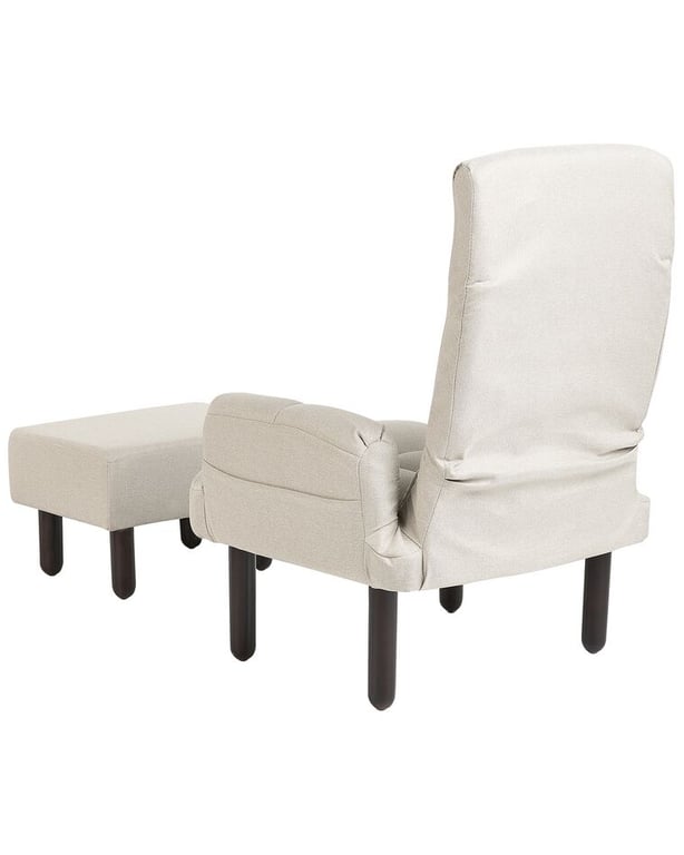 A versatile armchair and ottoman set with a foldable backrest, elegant boucle fabric, and a solid natural wood base—crafted for comfort, charm, and lasting durability.