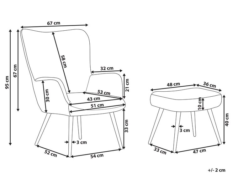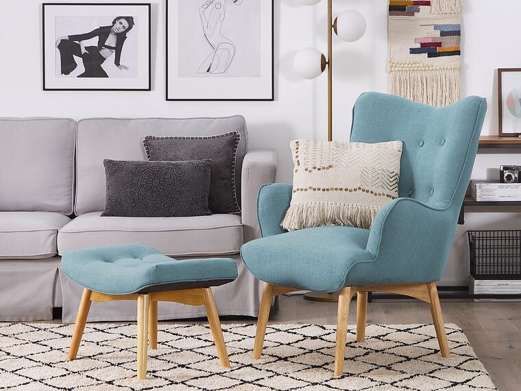 Choose timeless comfort and elegance with the Montana armchair and footrest set. The chair features a supportive high back and comfortable armrests, while the soft footrest offers a relaxing place to rest your legs. With its sculpted silhouette and natural wood legs, this set adds a refined, welcoming feel to any space.