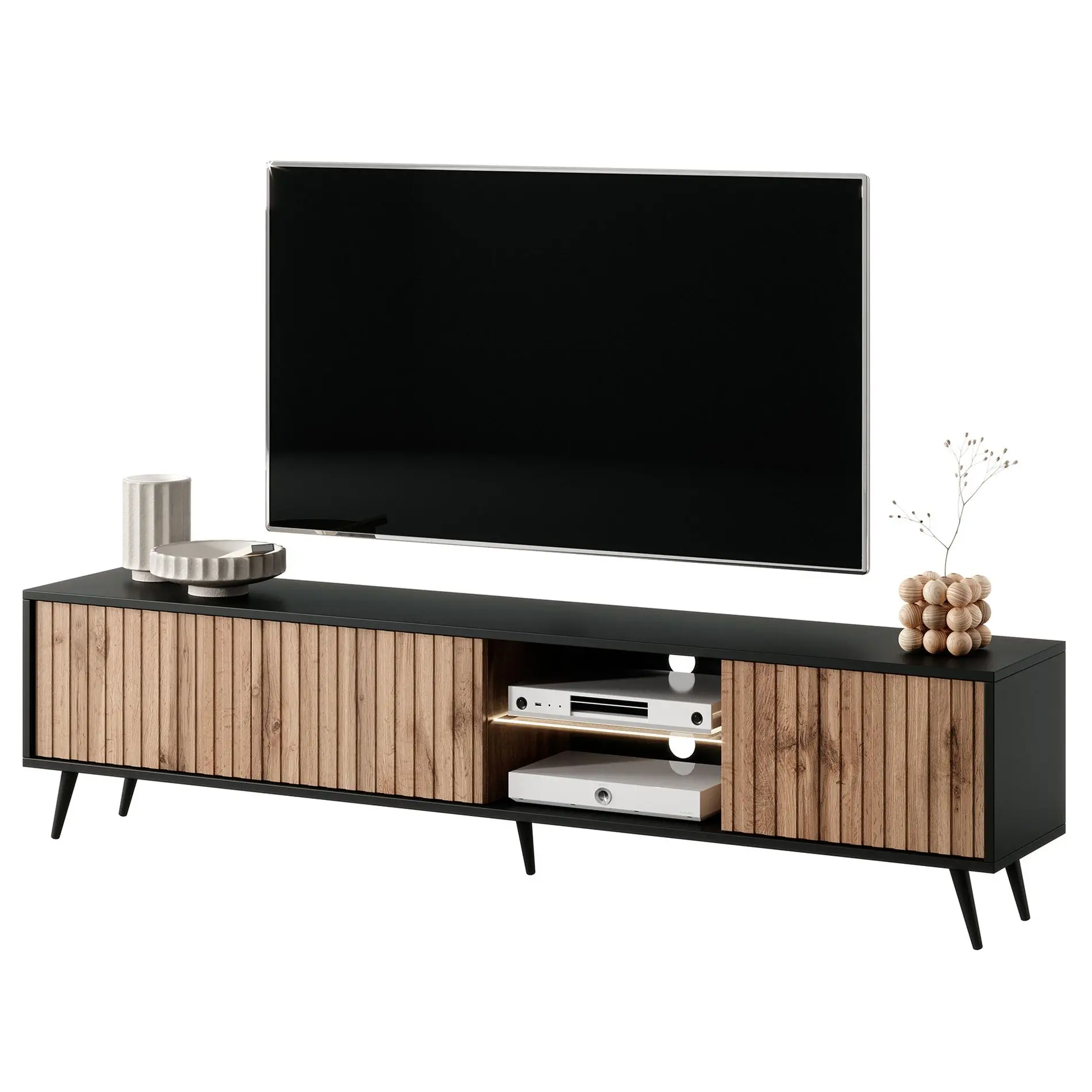 Nedra Black Natural Wood TV unit with LED Shelves