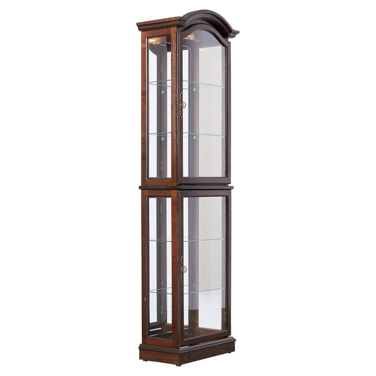 An elegant display cabinet made of natural wood, featuring built-in lighting and glass doors to showcase your finest pieces.