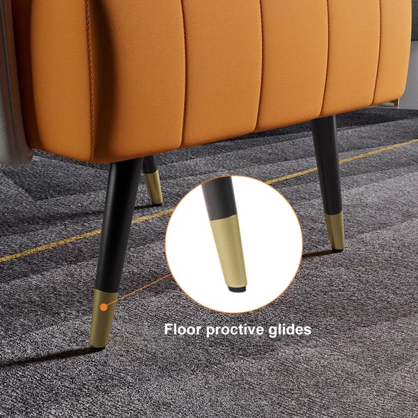 Add modern elegance to your space with the Saphira Accent Chair. Upholstered in soft leather and padded for comfort, it features sleek black legs with stainless steel accents. Stylish, versatile, and perfect for any corner of your home.