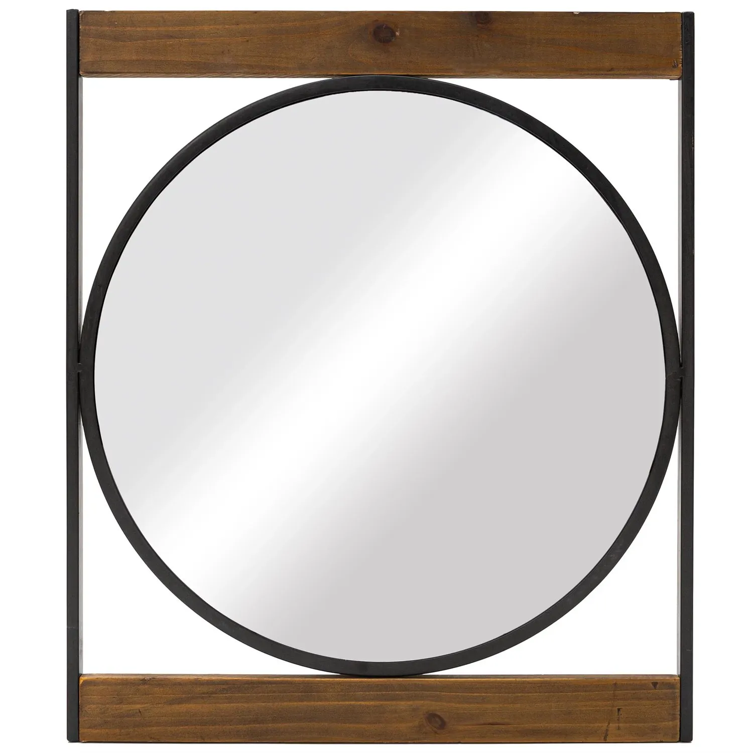 Add a touch of charm to your home decor with our round wall mirror with a square wooden and metal frame. Perfect for entryway, and bathroom. this mirror adds a modern and sophisticated look to your home.