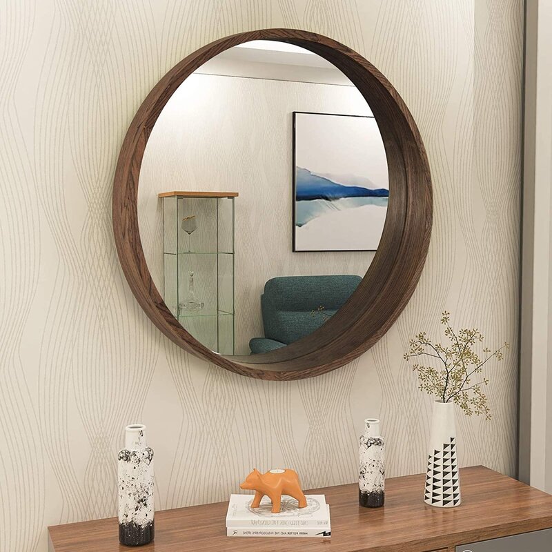 Add a natural touch to your home decor with this round mirror. The rustic finish of the frame enhances your wall decor, also you have a space to place your beauty products like lipsticks and powder because of the perfect size of the mirror.