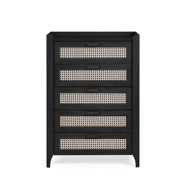 Are you looking for storage that fits your modern and vibrant life? Zaria combines natural wood with rattan fronts, an elegant five-drawer unit that keeps you organized and adds vitality to your space. Perfect for any room in need of a refreshing touch.