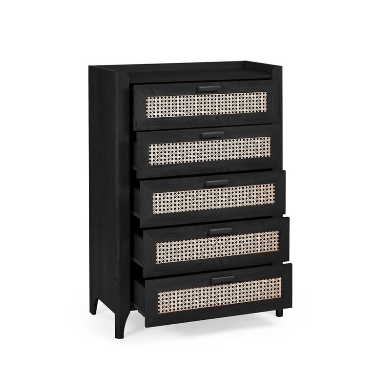 2. Five spacious drawers with airy rattan fronts for natural ventilation.